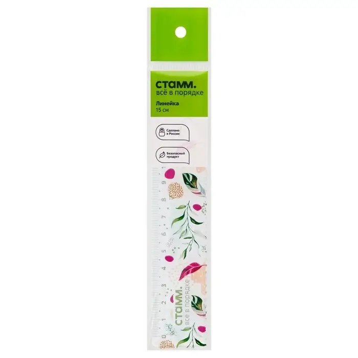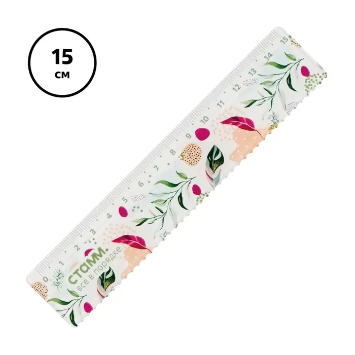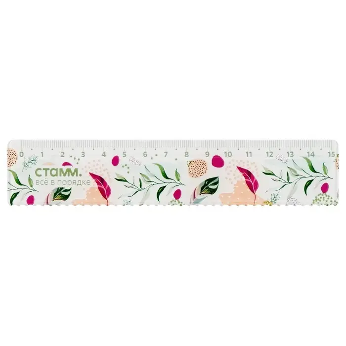 Линейка 15 см Стамм "Листья", пластиковая, с волнистым краем, с дизайном, европодвес