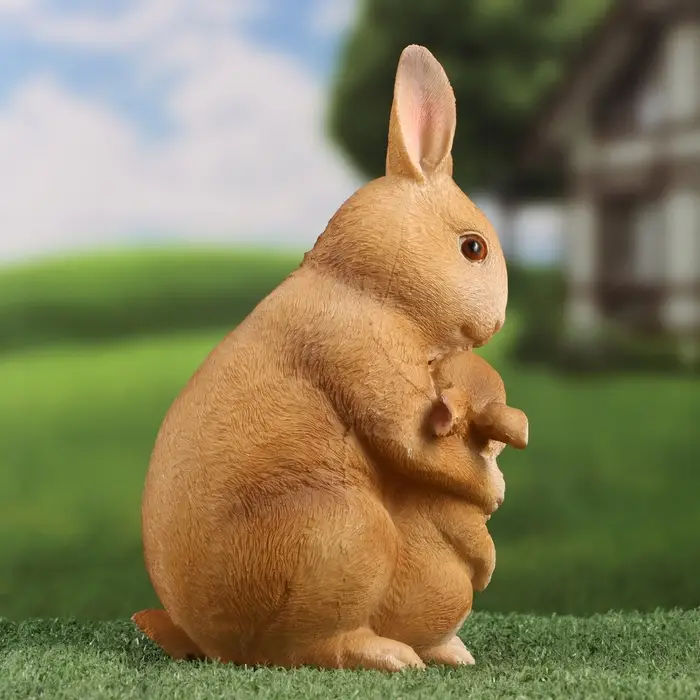 Трогательная композиция, которая наполнит ваш дом теплом и уютом — фигурка заботливой зайчихи с малышом. Выполненная из качественного полистоуна, эта скульптура передаёт всю нежность материнской заботы в милых деталях: от бережного жеста лапки до любопытного взгляда зайчонка.