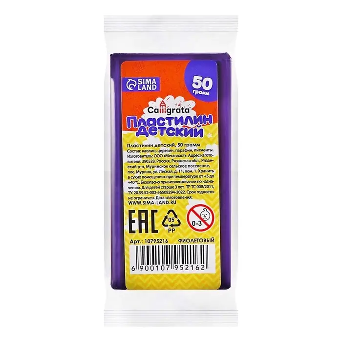 Пластилин 50г Calligrata ФИОЛЕТОВЫЙ
