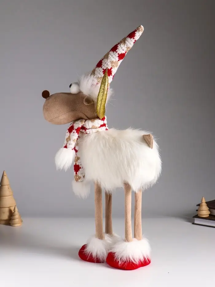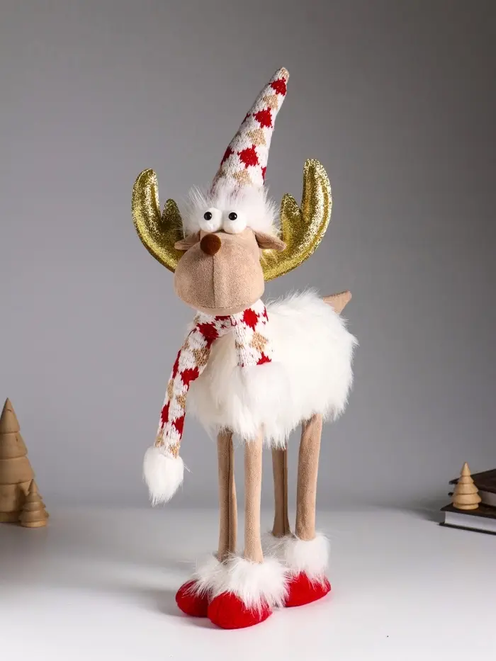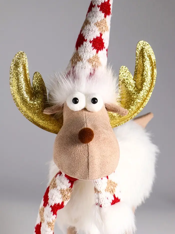 Кукла интерьерная "Лосик в белой шубе, колпаке и шарфе с узорами" 22х12х48 см