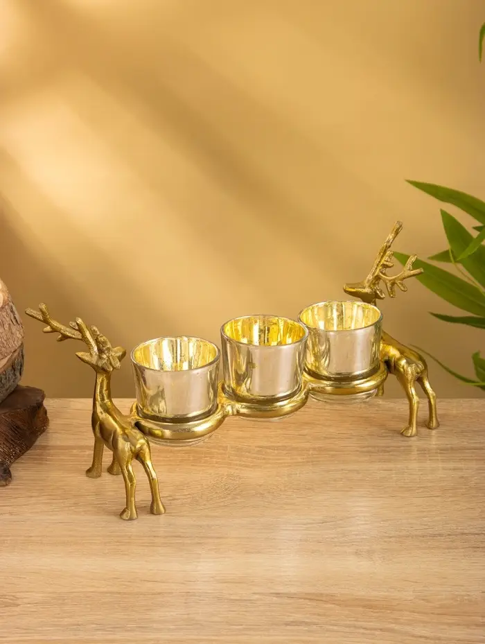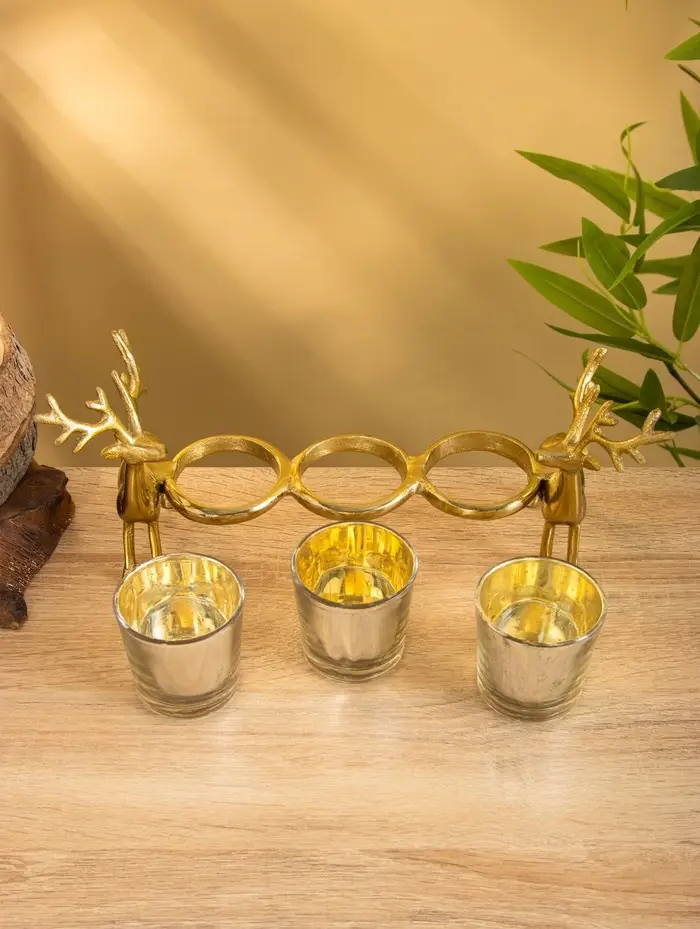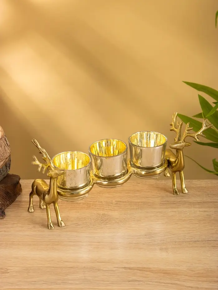 Подсвечник на 3 свечи «Оленята», 29×8×13 см, алюминий