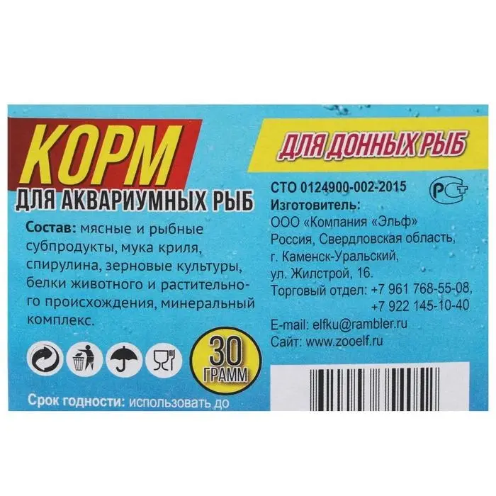 Корм повседневный для донных рыб "Аквакулинар", 30 г