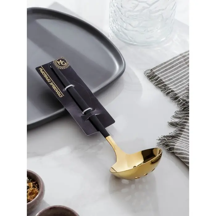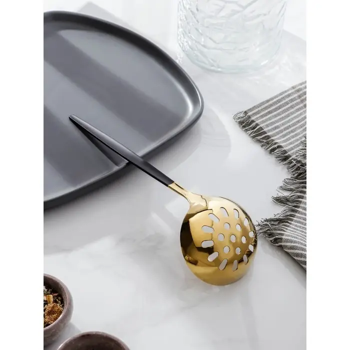 Шумовка из нержавеющей стали Magistro «Грэйс», h=24,5 см, цвет ручки чёрный, цвет головы золотой
