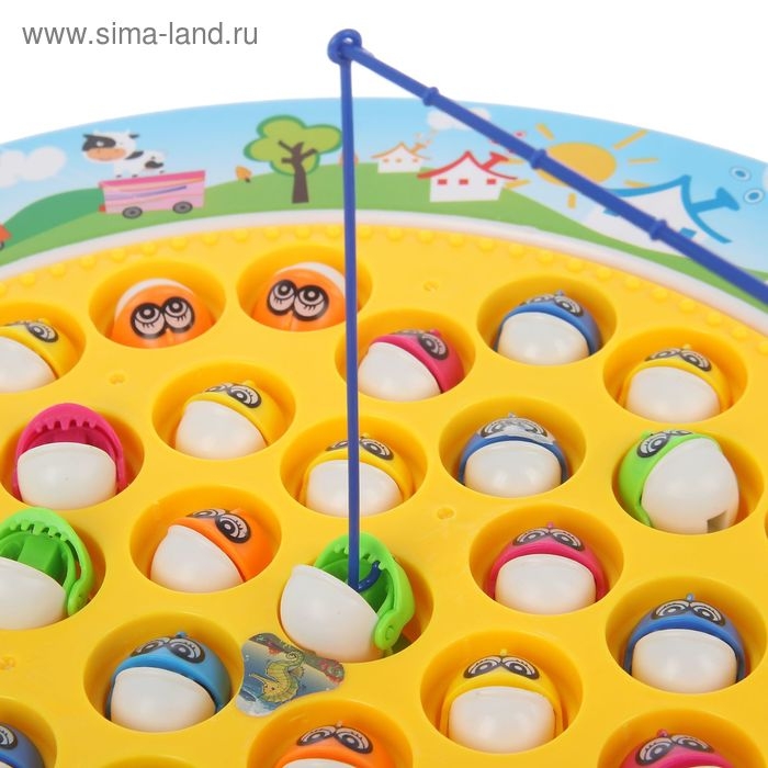 Чтобы начать, нужно включить платформу с рыбками: Игрушки начнут вращаться, и кроха сможет вылавливать их с помощью удочки. Весь процесс сопровождается задорной музыкой, с которой рыбачить ещё увлекательнее.