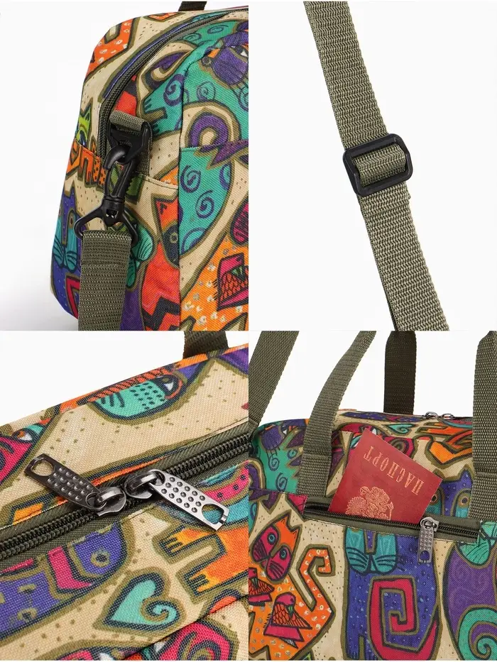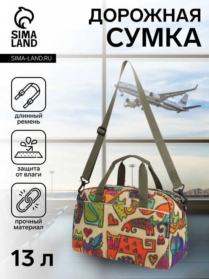 Сумка дорожная на молнии, наружные карманы, длинный ремень, разноцветная