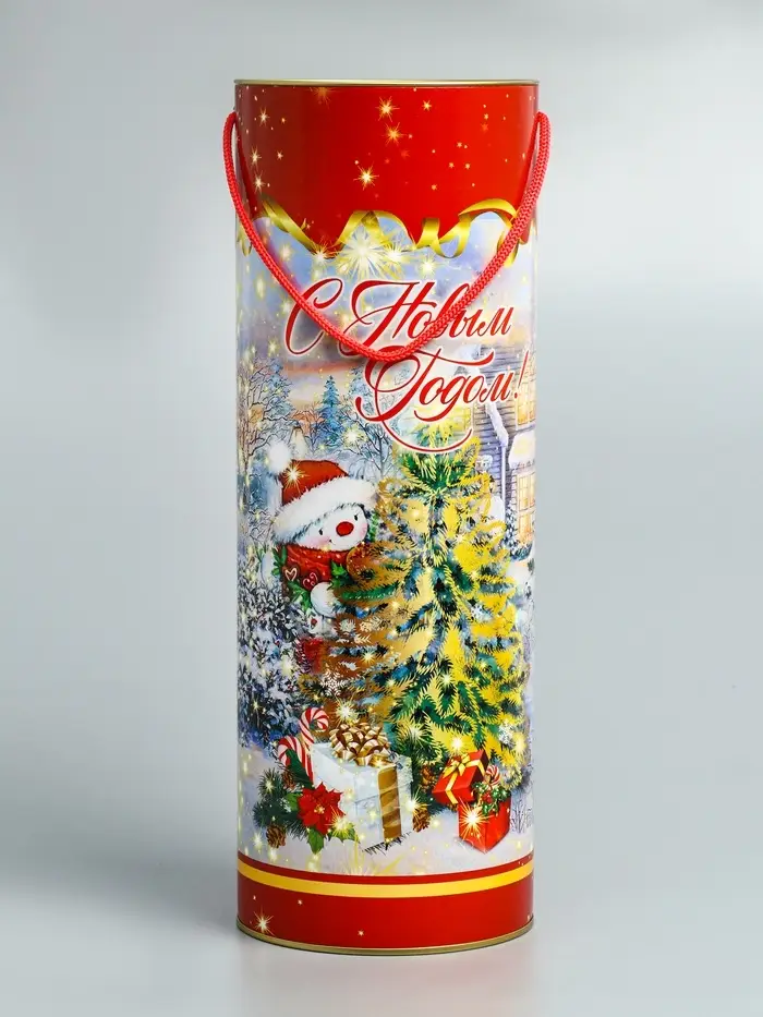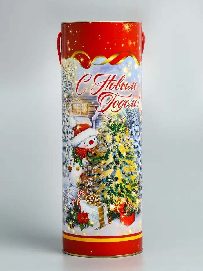 Подарочная коробка, тубус под бутылку «Золотая елочка» 120х345мм (325 мм внутр. Высота)¶