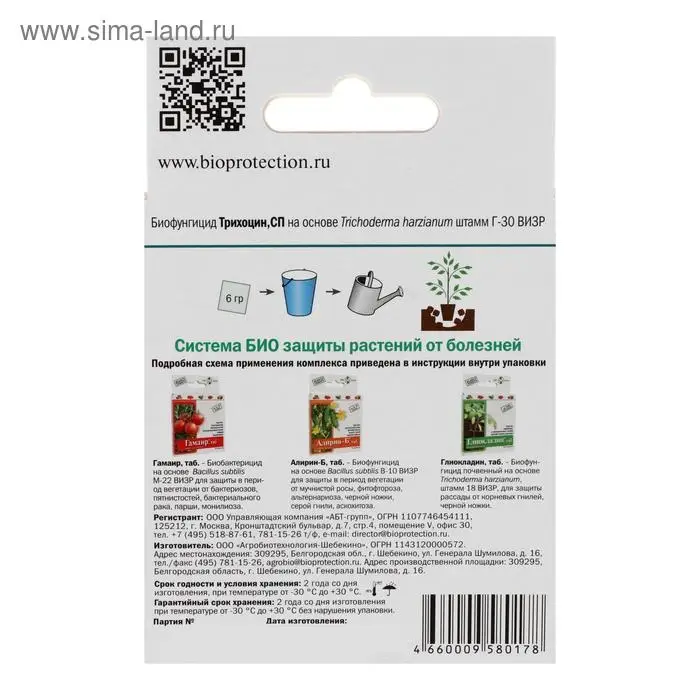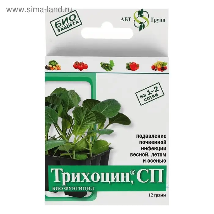Используется для обеззараживания почвы, за счет подавления грибом Триходерма возбудителей почвенных заболеваний.