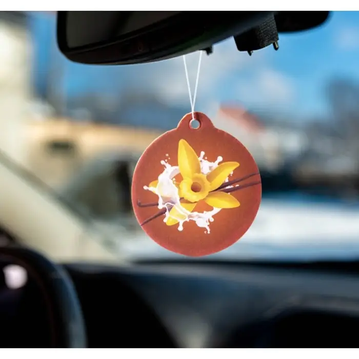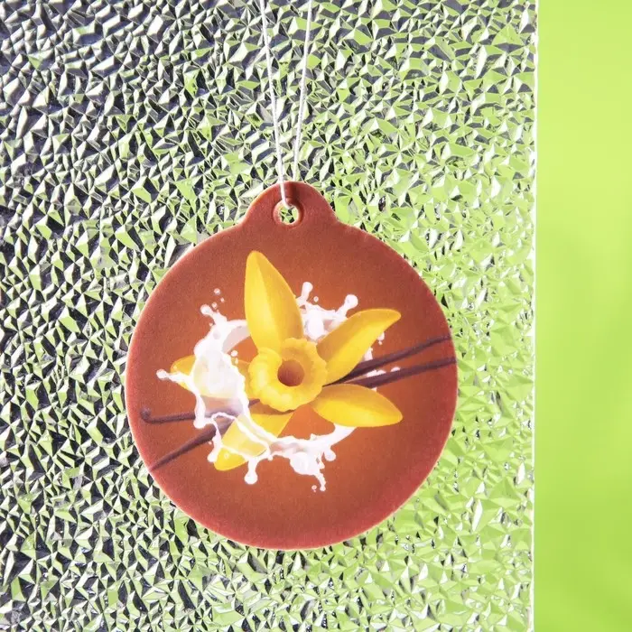 Подвесной ароматизатор для автомобиля и дома. Имеет лёгкий вес и цепляется за подвес на лобовое стекло или кладётся в любую нишу. Специальный картон пропитан парфюмерной композицией и источает приятный аромат, который охватит окружающее пространство и будет успокаивать и одновременно помогать оставаться бдительным. А яркий дизайн ароматизатора послужит хорошим украшением для салона.