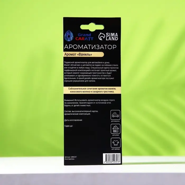 Ароматизатор подвесной Grand Caratt Ваниль, картонный