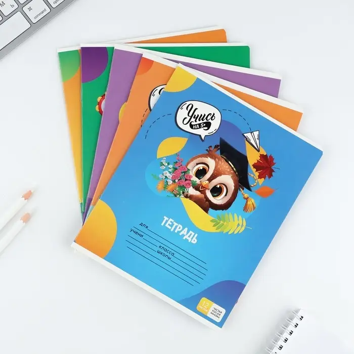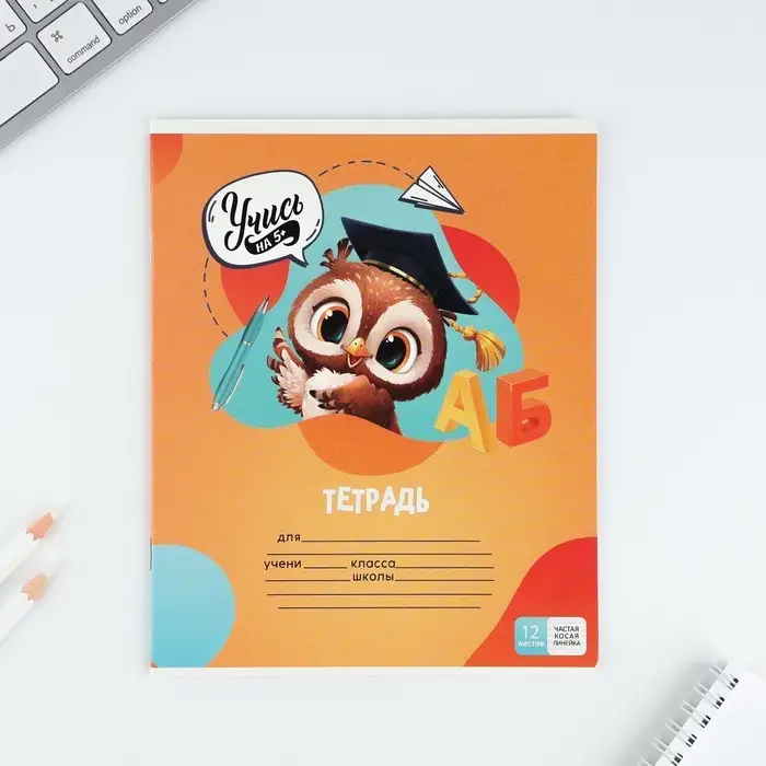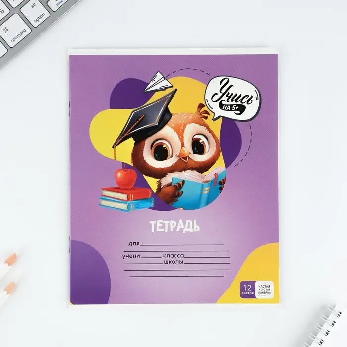 Тетрадь 12 листов в частую косую линейку, А5, на скрепке, блок №1 «Учись на 5+» МИКС