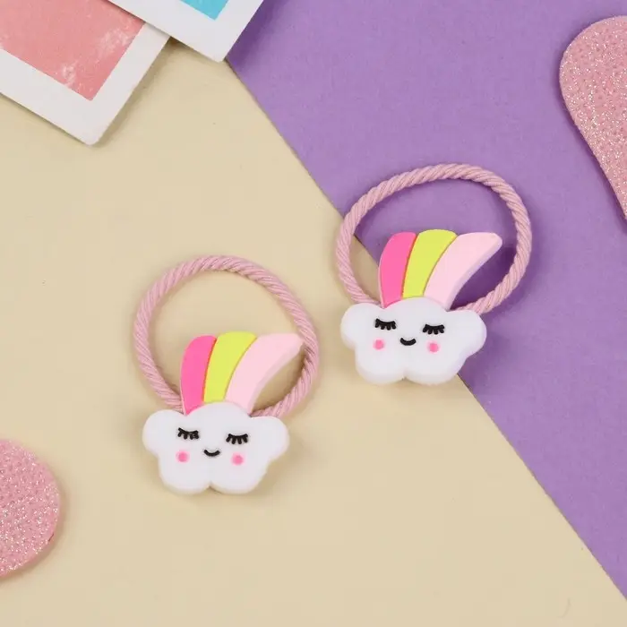 Резинка для волос "Крошка" (набор 2 шт) облачко шлейф,3 см,бело-розовый