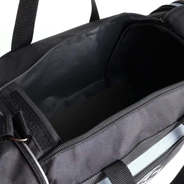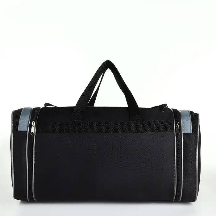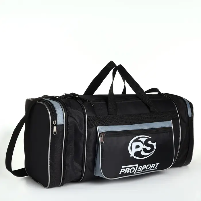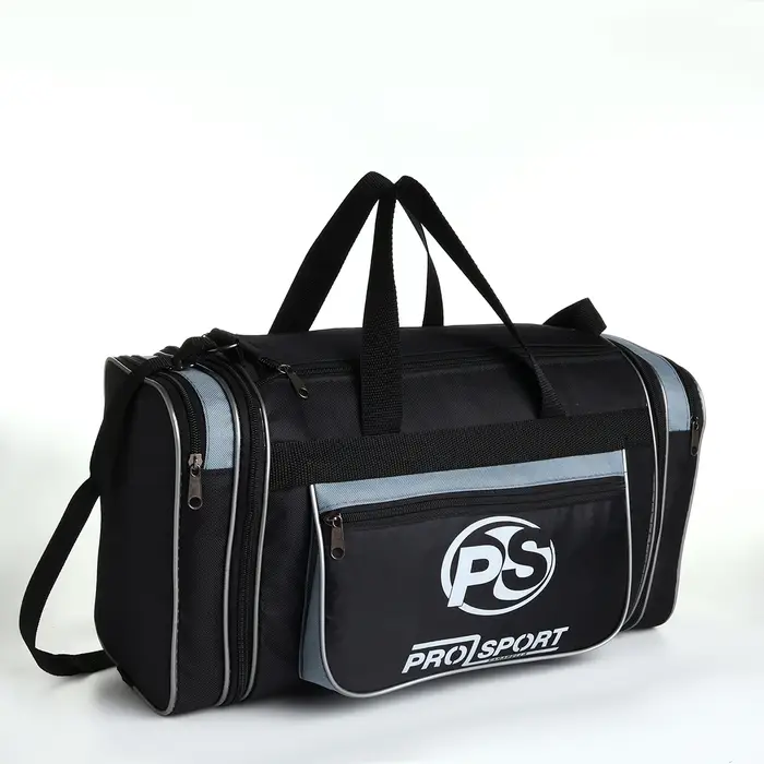 Сумка спортивная на молнии, 3 кармана, длинный ремень, цвет чёрный/серый