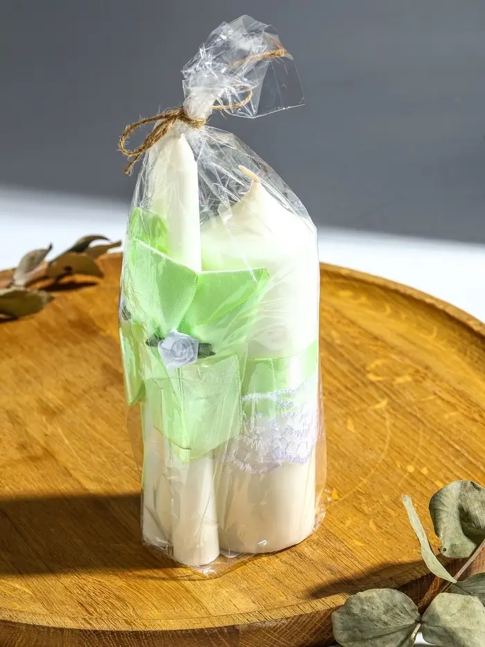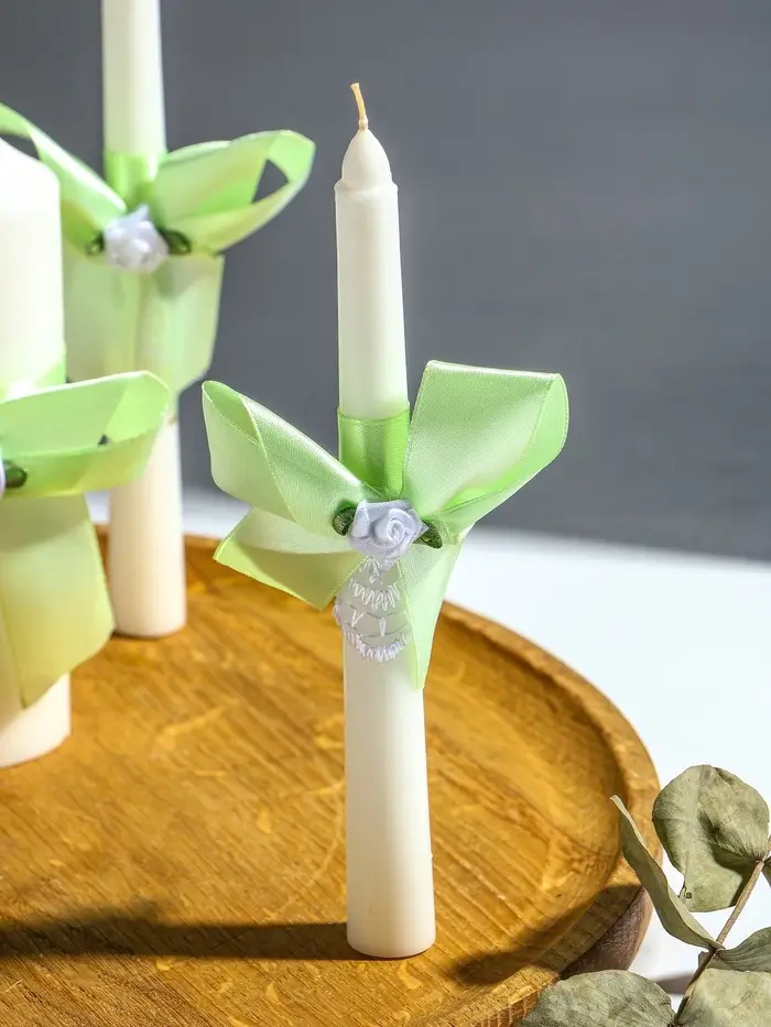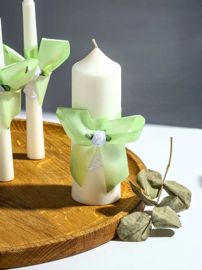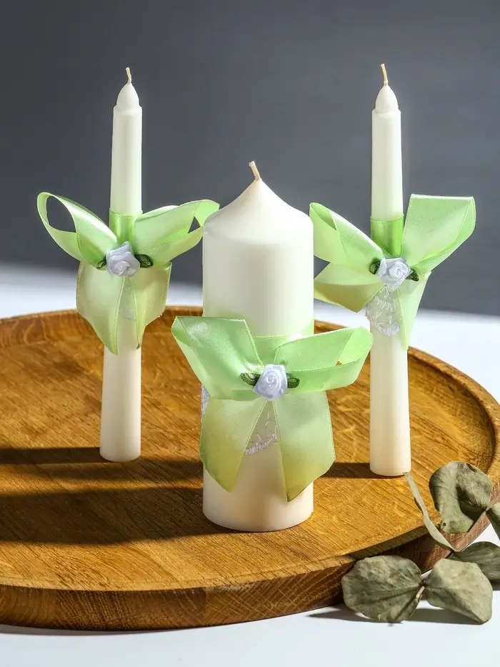 Свечи свадебные "Пышный" набор 3 шт (16 см + 2 шт по 18 см), мятный