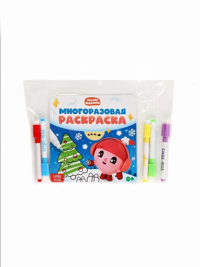 Многоразовая раскраска "Встречаем Новый год", 12 стр., 16х16 см, Малышарики