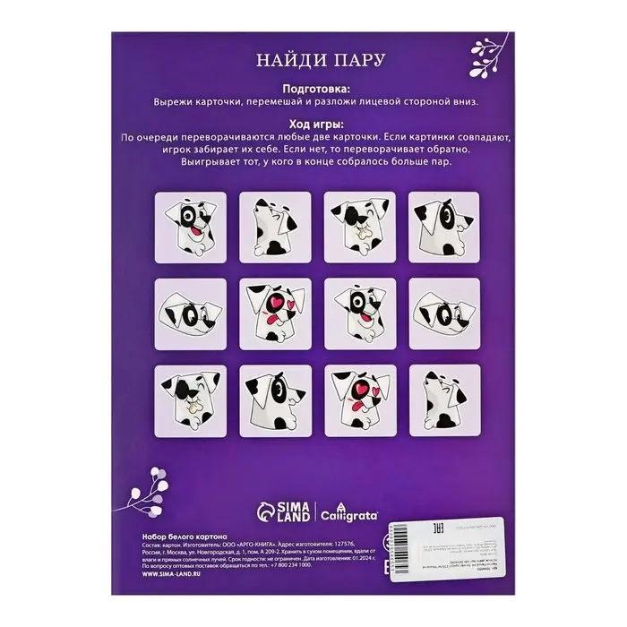 Картон белый А4, 8 листов "Каляка-Маляка", немелованный