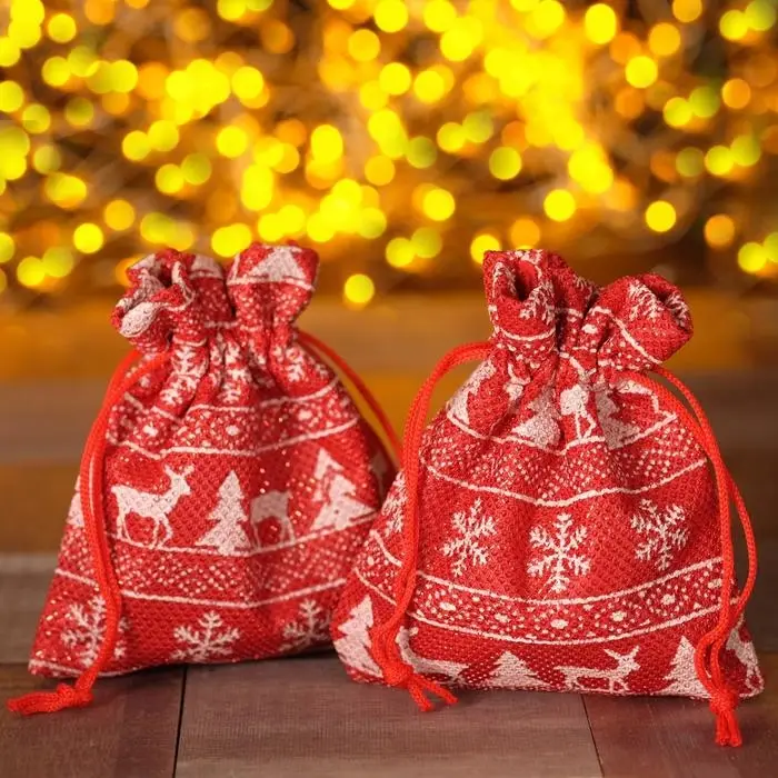Мешочек новогодний "Орнамент", 10*12см, цвет красно-белый
