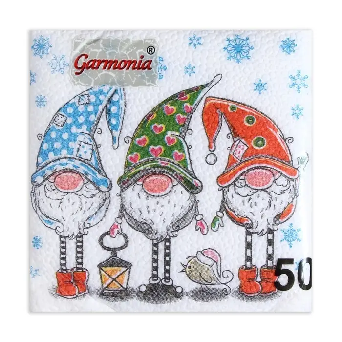 Салфетки новогодние бумажные Гармония цвета «Сказочные гномы», 24х24 см, 50 шт