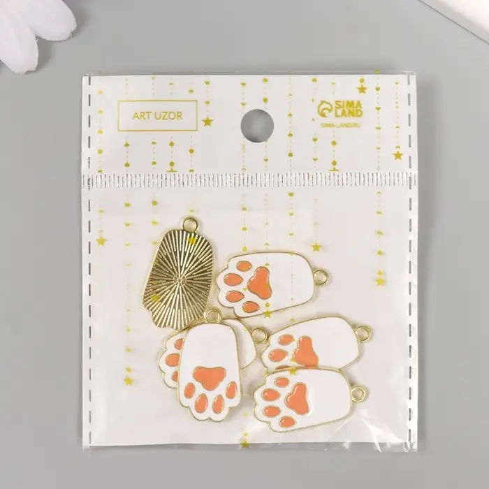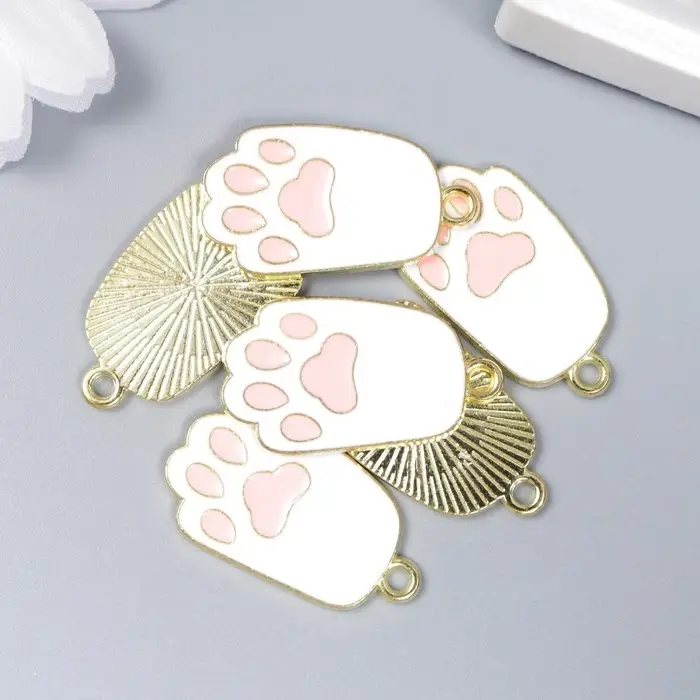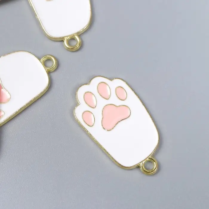 Декор для творчества металл, эмаль "Лапка котика" бело-розовый 2,7х1,5 см