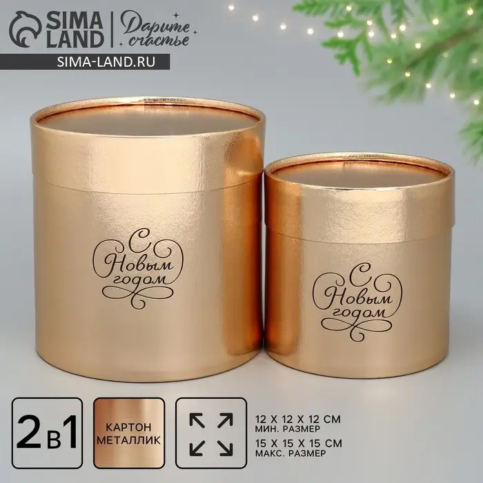 Набор коробок золотых 2 в 1 «Новогоднее настроение», 12 х 12, 15 х 15 см