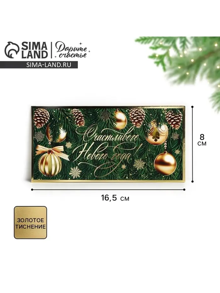 Конверт для денег «Счастливого Нового года», шары, тиснение, 16.5 х 8 см