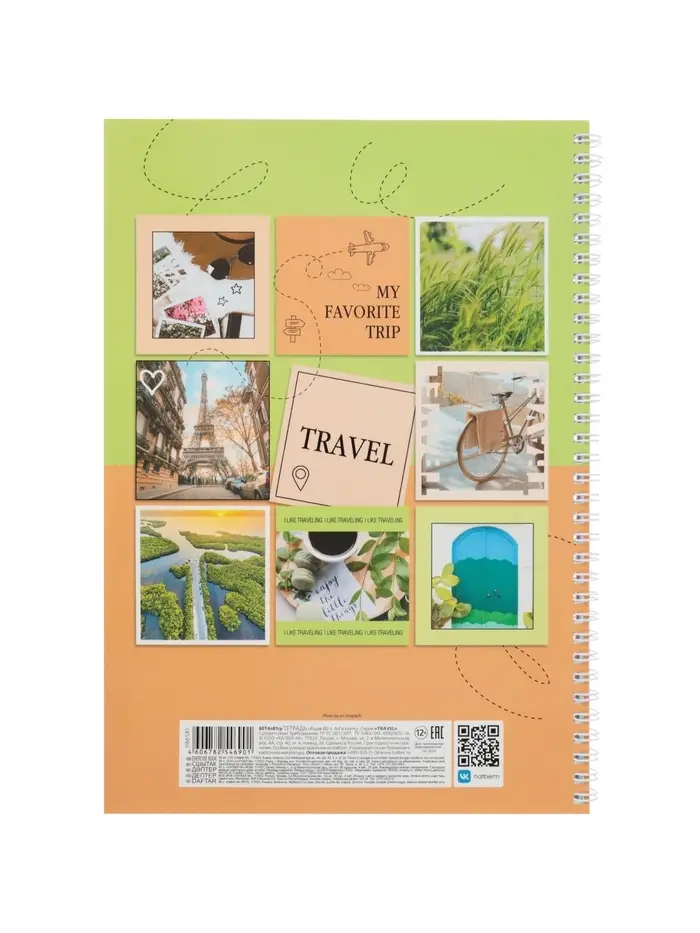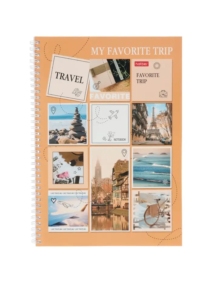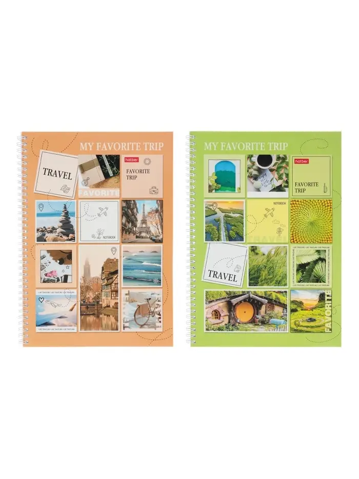 Тетрадь А4 80л кл Hatber "TRAVEL", на греб, перф на отрыв, многоцв срез, глянц лам 2В МИКС