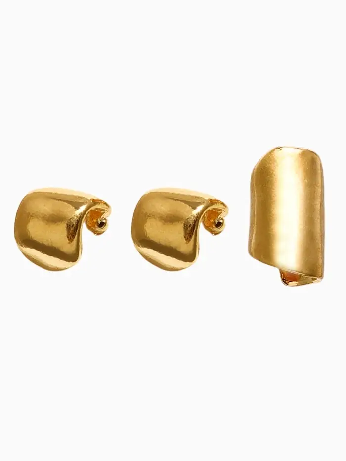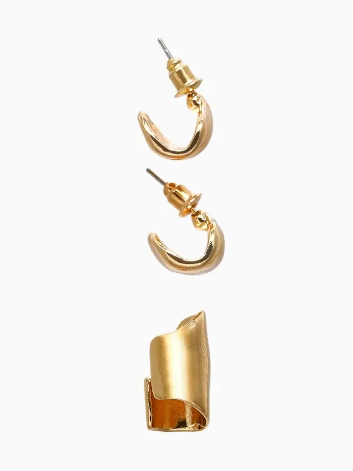 Набор серьги и каффа 3 шт. "Минимализм" тренд, цвет золото