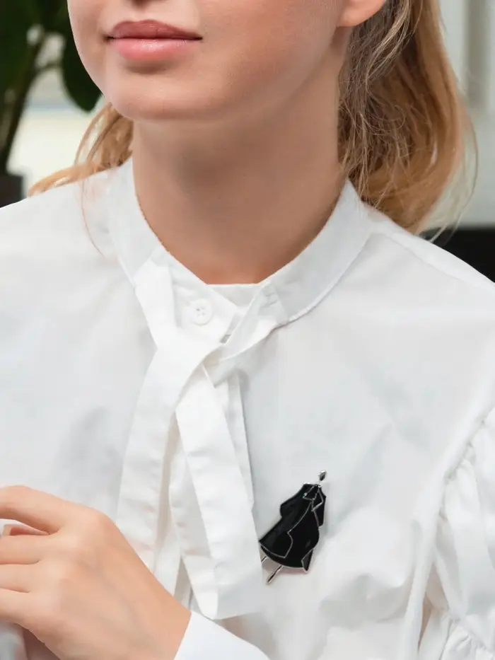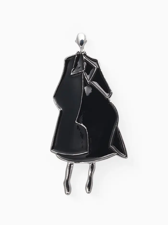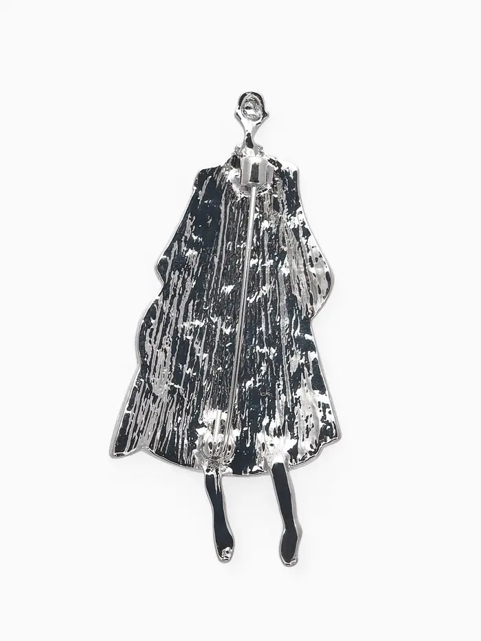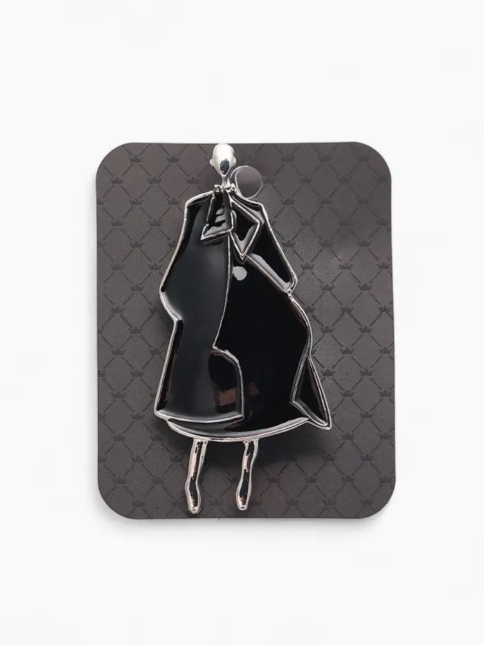 Брошь "Дама в пальто" с эмалью, цвет чёрный в серебре