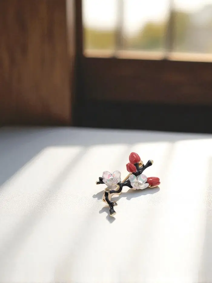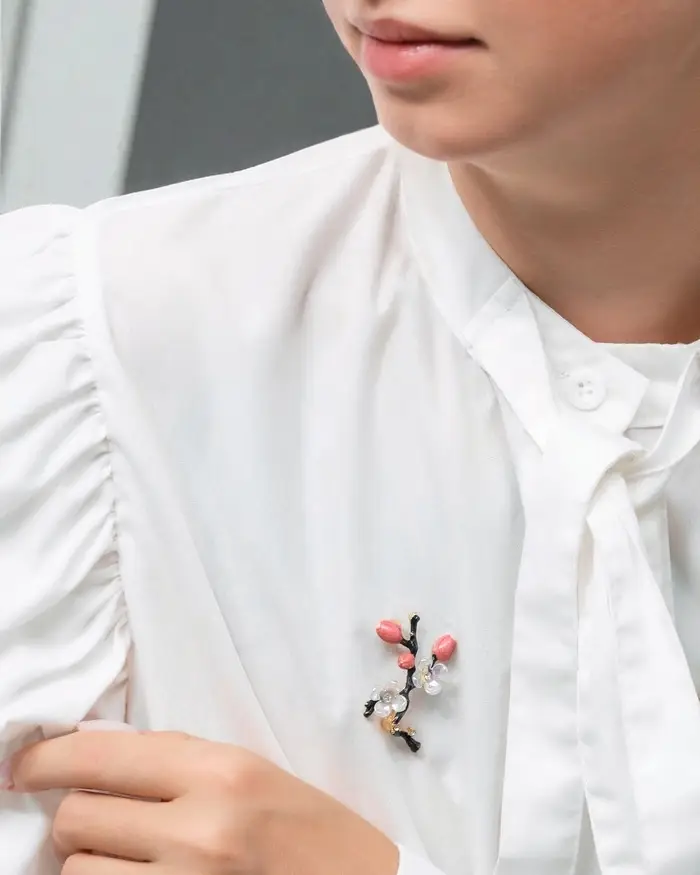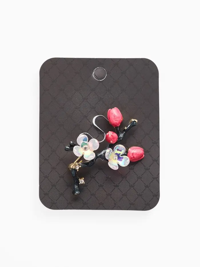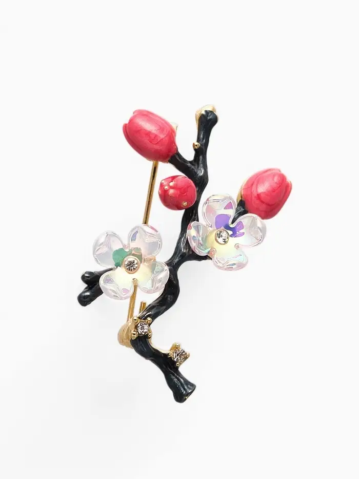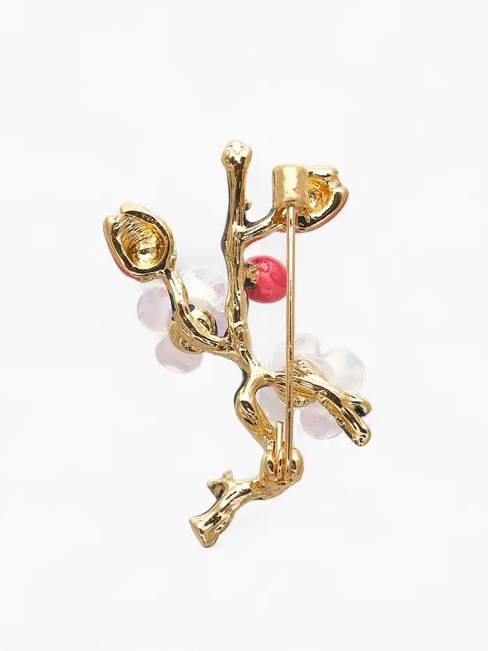 Брошь "Веточка сакуры" цветок, с эмалью, цветная в золоте