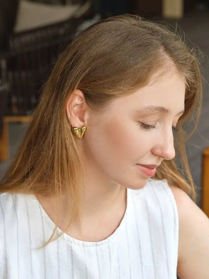 Набор серьги "Сердце" нежность, цвет золото