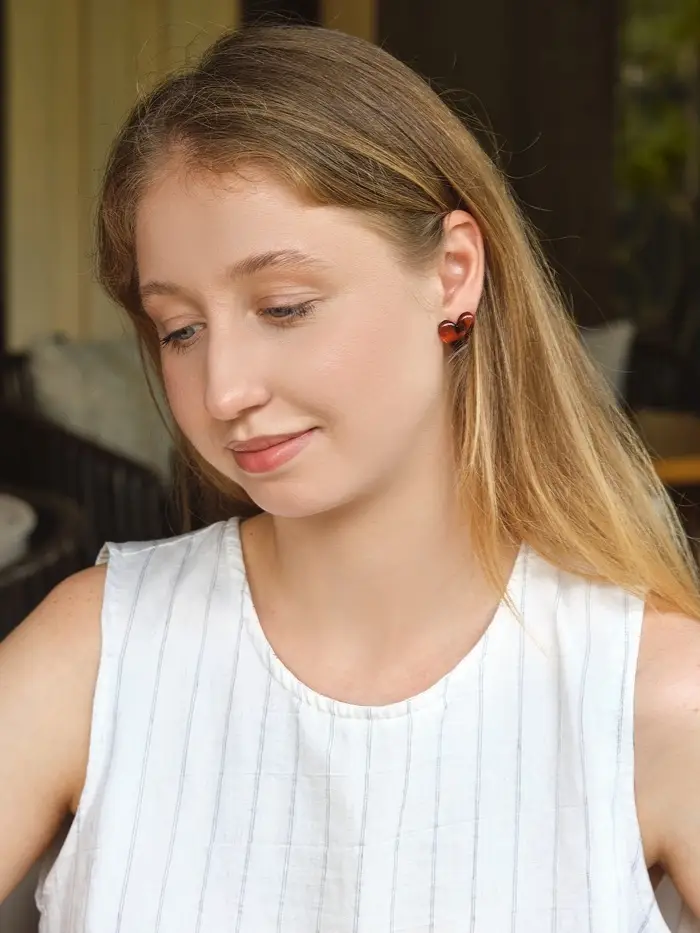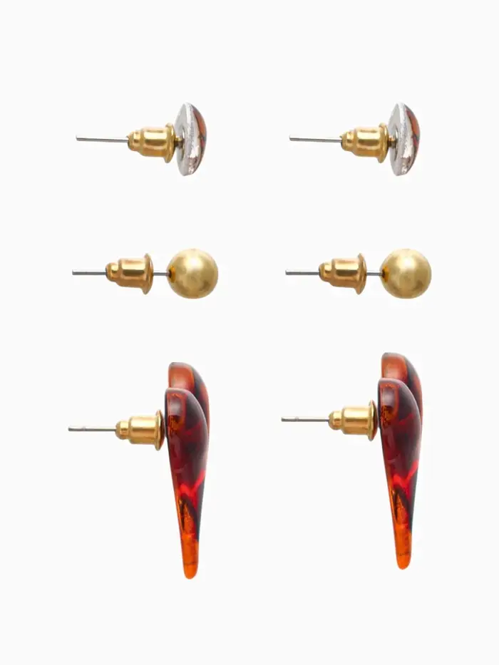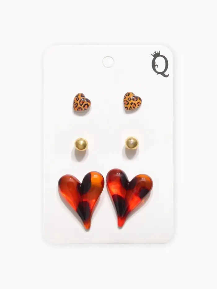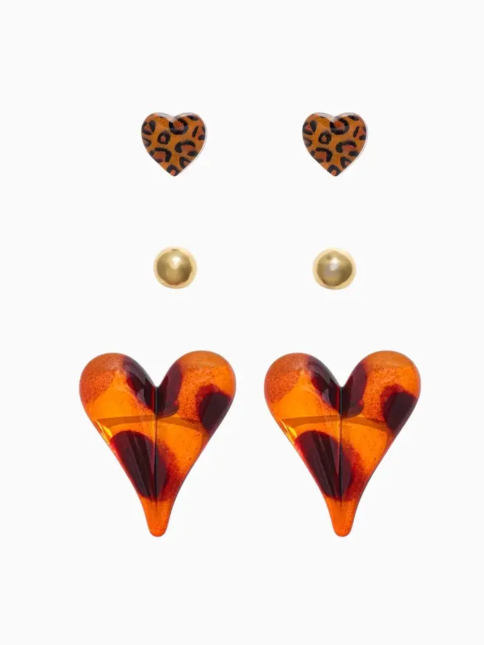 Набор серьги "Леопард" сердце и бусина, цветной в золоте