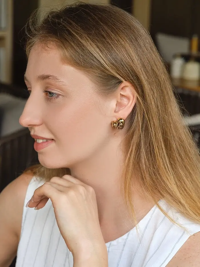 Набор серьги "Леопард" сердце крупное, цветной в золоте