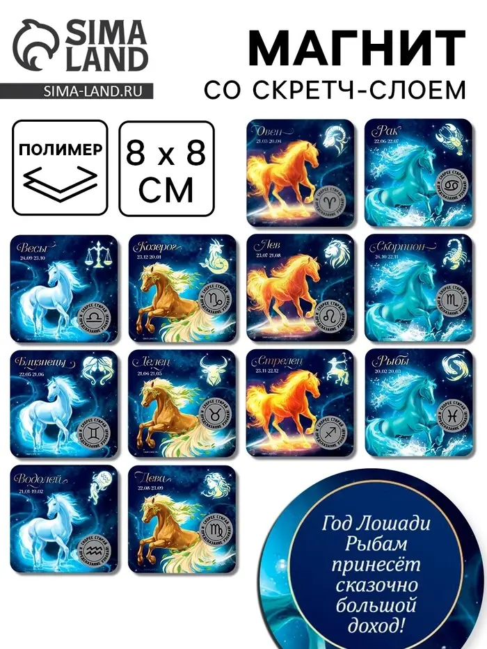 Магнит новогодний на холодильник «Гороскоп», микс 12 шт, 8 х 8 см