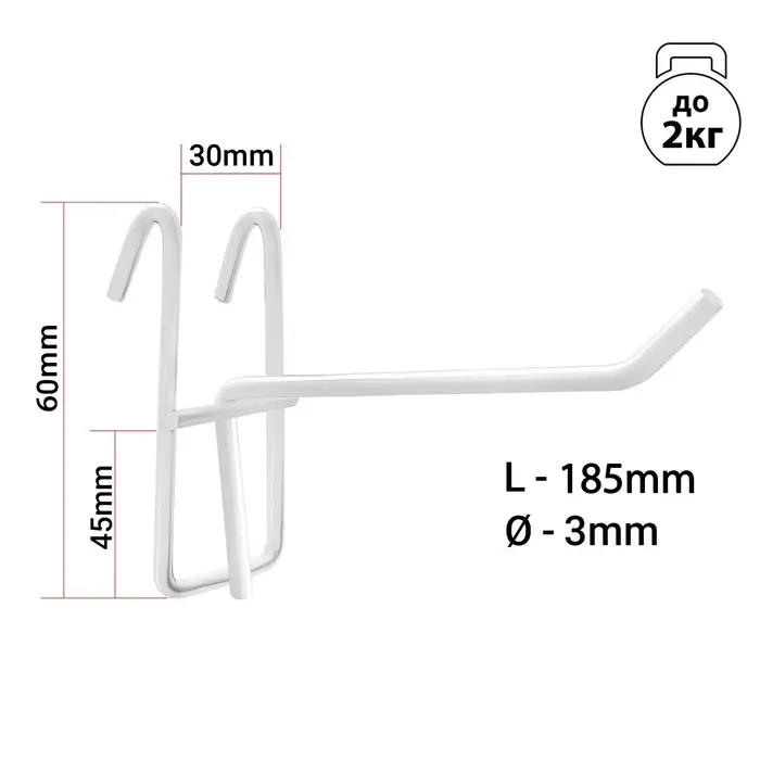 Крючок на сетку одинарный, d=3 мм, L=18,5 см, цвет белый