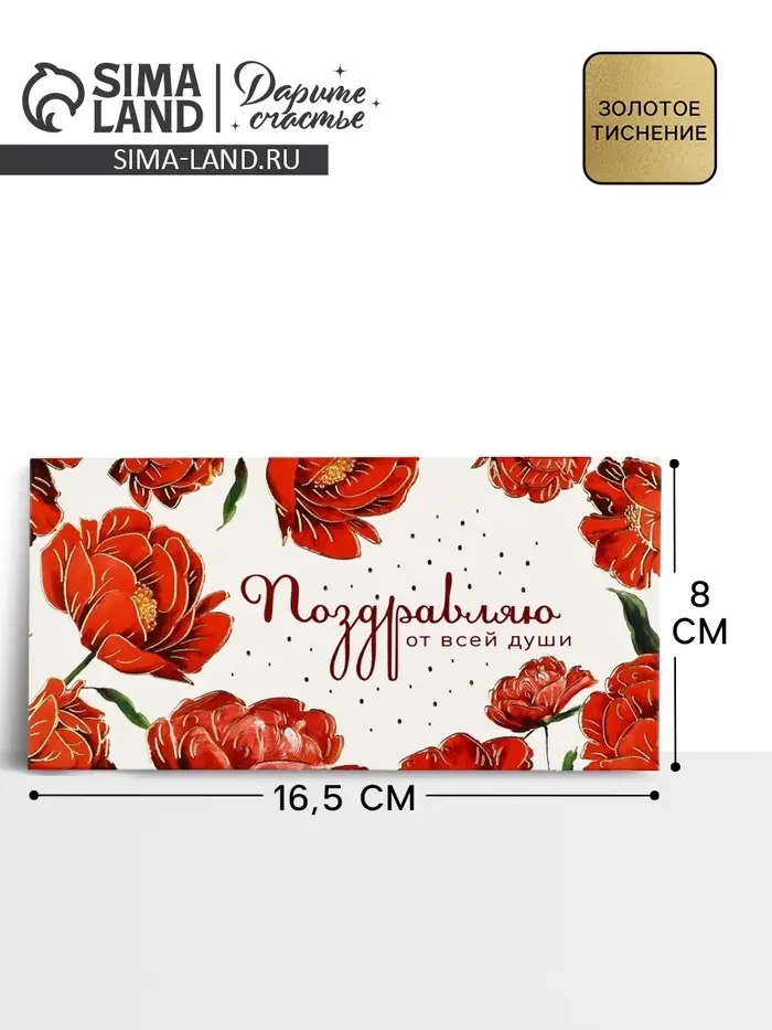 Конверт для денег «Поздравляю от всей души» тиснение, 16.5×8 см