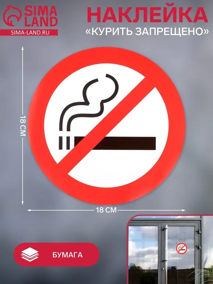Наклейка знак «Курить запрещено», 18×18 см