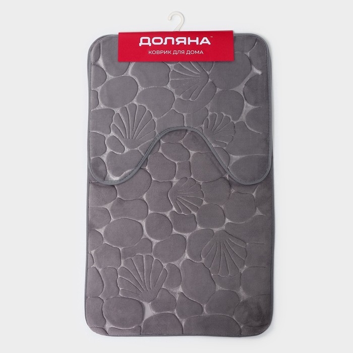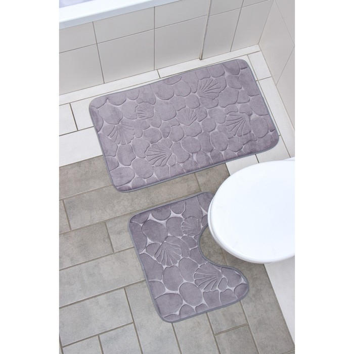 Коврики для ванной и туалета Доляна «Галька, ракушки», 2 шт., 40×50 см, 50×80 см, серые
