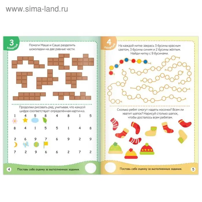 - Задания включают счёт, простые примеры, задачки на логику и математическое мышление.