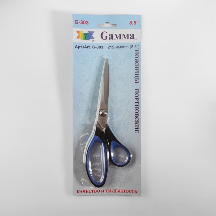 Ножницы портновские, скошенное лезвие, термостойкие ручки, 8,5'', 21,5 см, цвет чёрный/голубой