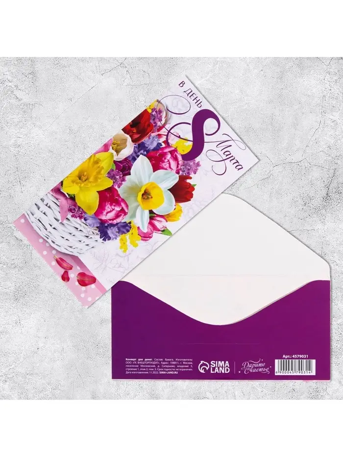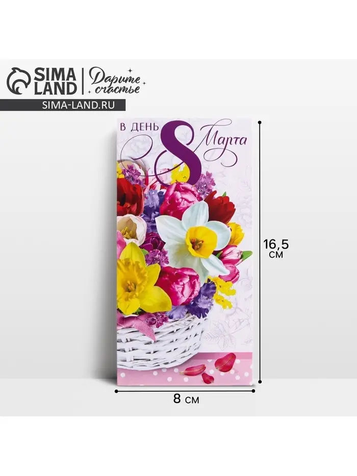 Конверт для денег «В день 8 марта» корзина, 16.5 х 8 см