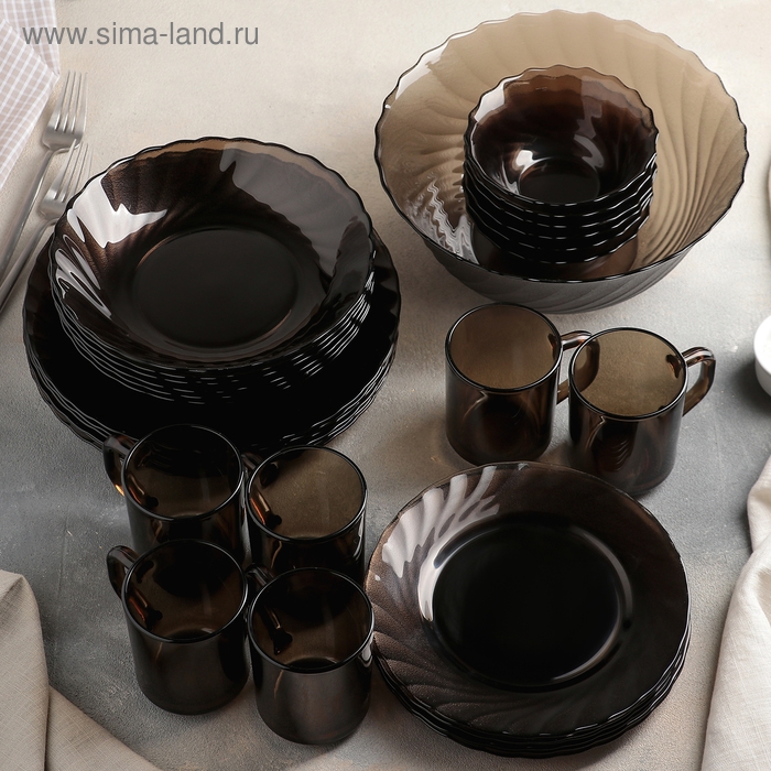 Сервиз столовый стеклянный «Амбьянте», 19 предметов, цвет коричневый