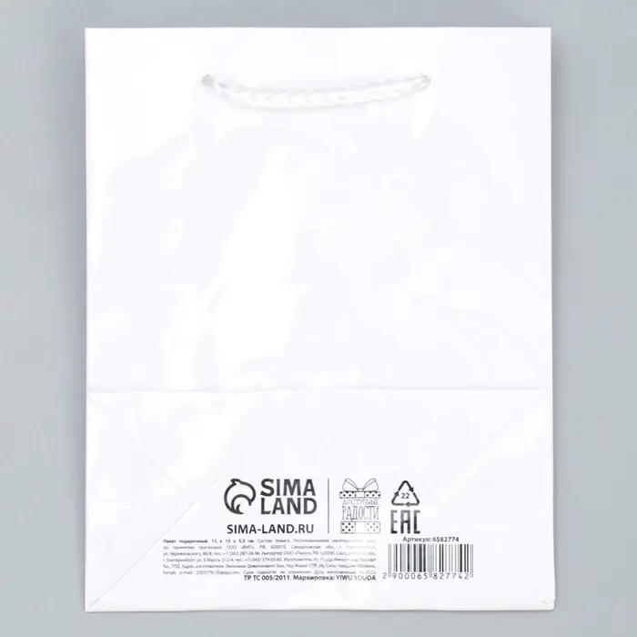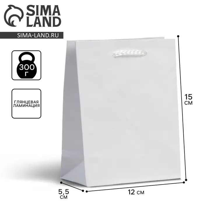 Пакет подарочный ламинированный, упаковка, «Белый», S 12 х 15 х 5.5 см