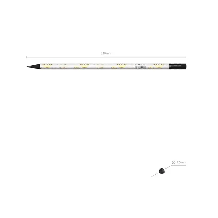 - Ластик карандаша средней жесткости изготовлен из экологически чистого и гипоаллергенного материала термопластичной резины (TPR).