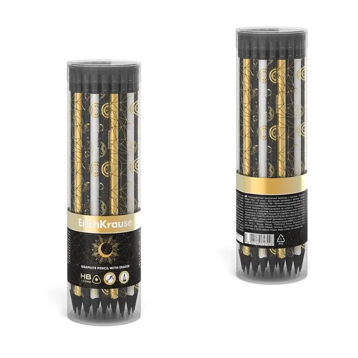 - Четыре дизайна корпуса карандаша с фольгированными элементами, черное дерево, ластик черного цвета.