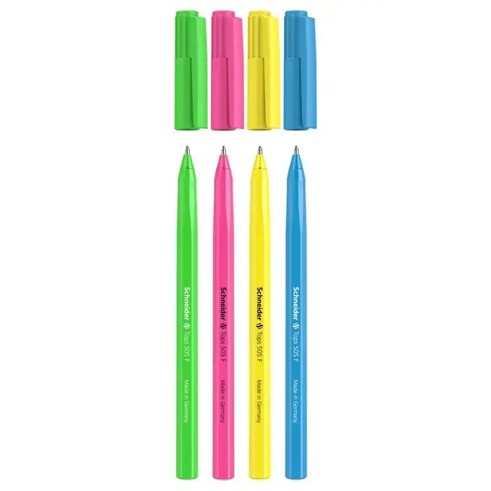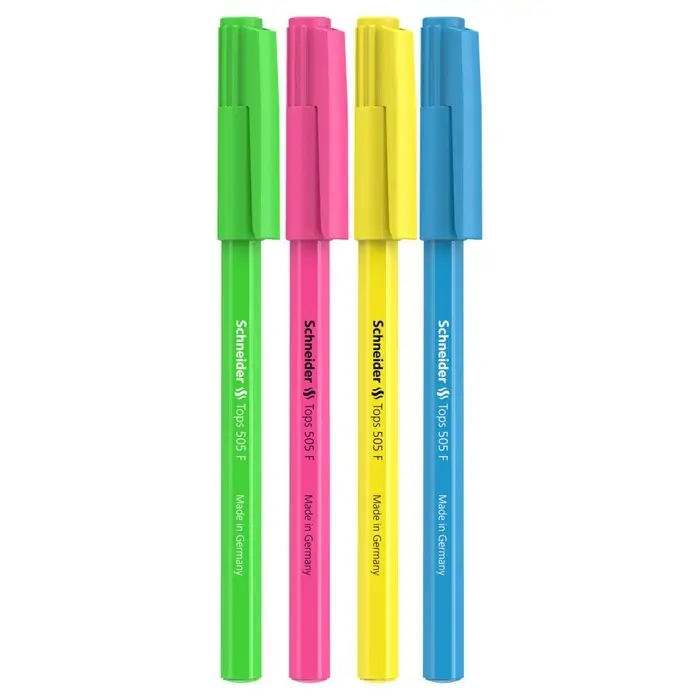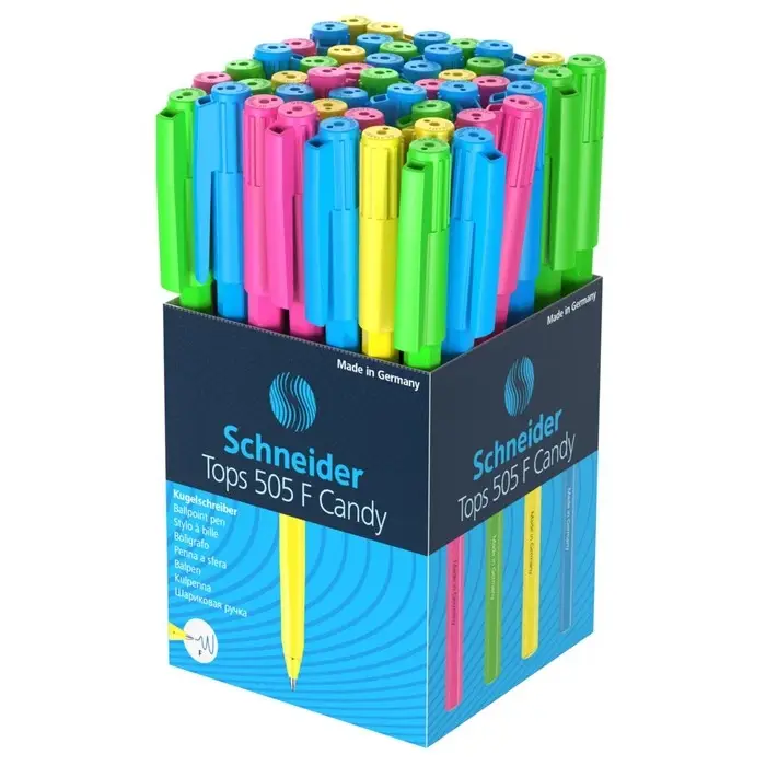 Письменные принадлежности Schneider разрабатываются и производятся только в Германии, их отличают функциональный дизайн, безупречное качество, надежность и экологичность. Одноразовая шариковая ручка “Tops 505 F” с вентилируемым колпачком пишет в 2 раза дольше других хороших ручек. Tops 505 F Candy обеспечит ровное и гладкое письмо, а яркие дизайны корпуса в неоновых оттенках подчеркнут ваш стиль и индивидуальность. Длина непрерывной линии - до 4 000 метров.
