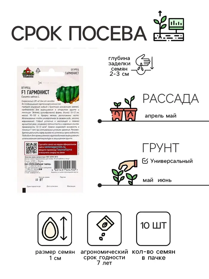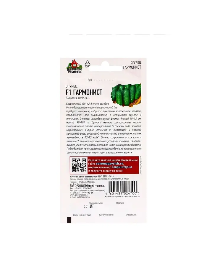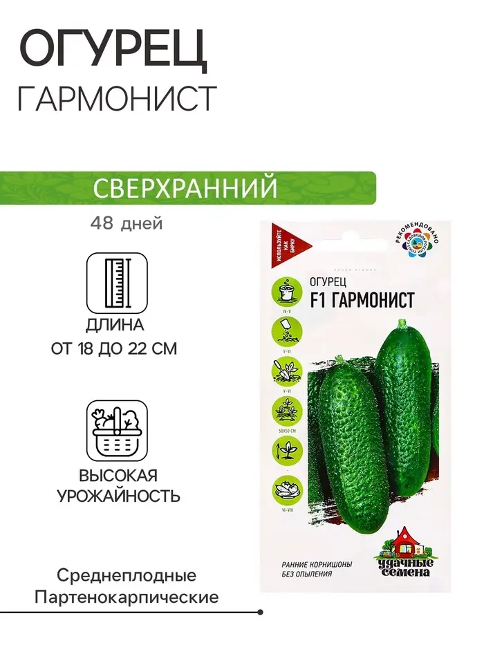 Семена Огурец Гармонист F1 10 шт. Уд. с. корнишон