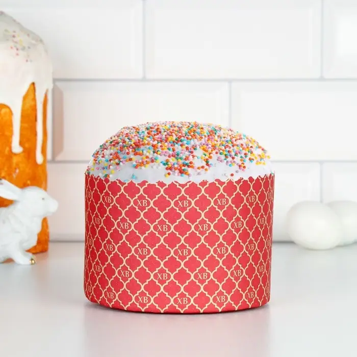 Форма бумажная для кулича "ХВ КРАСНАЯ" 134 x 90 мм