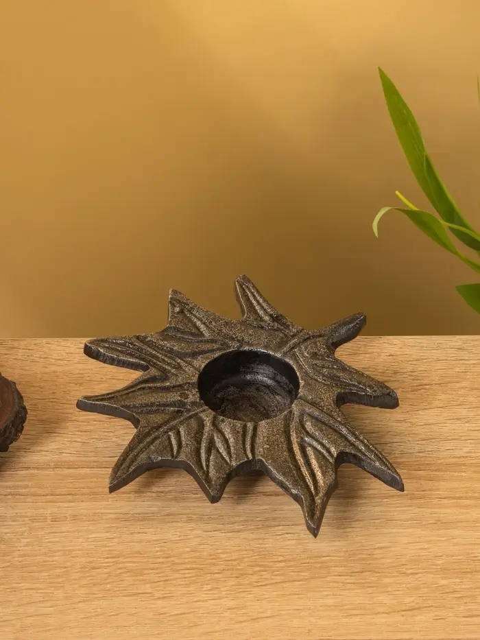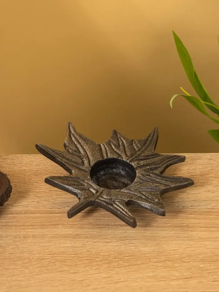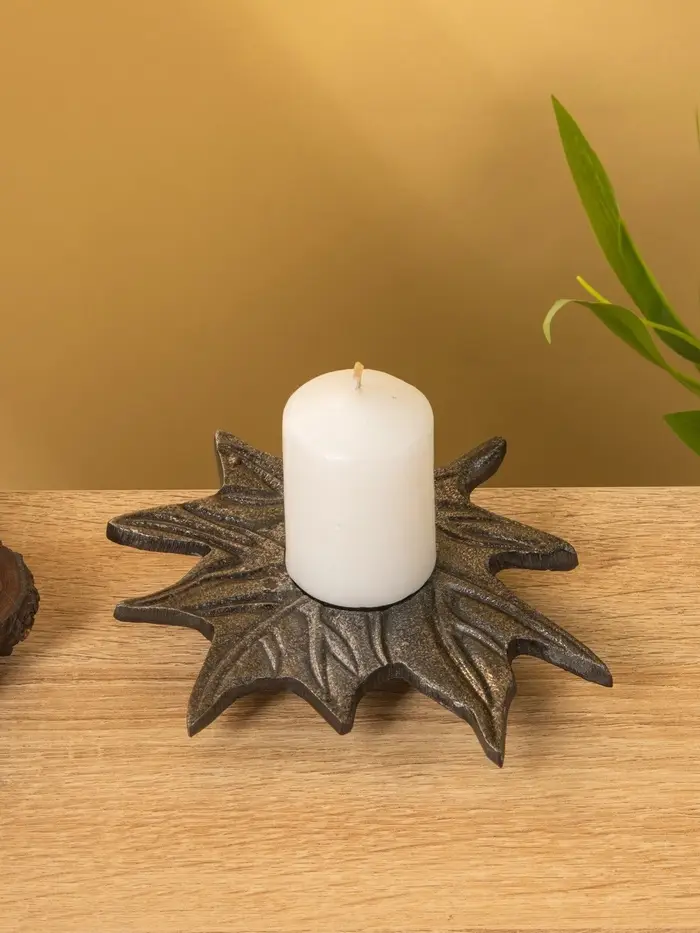 Подсвечник для чайной свечи "Кленовый лист" алюминий 14х14х2 см