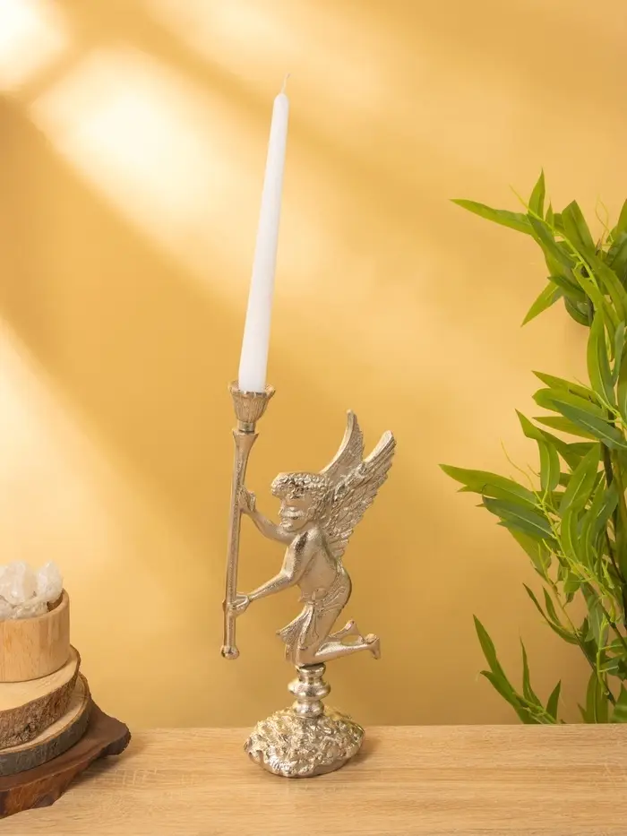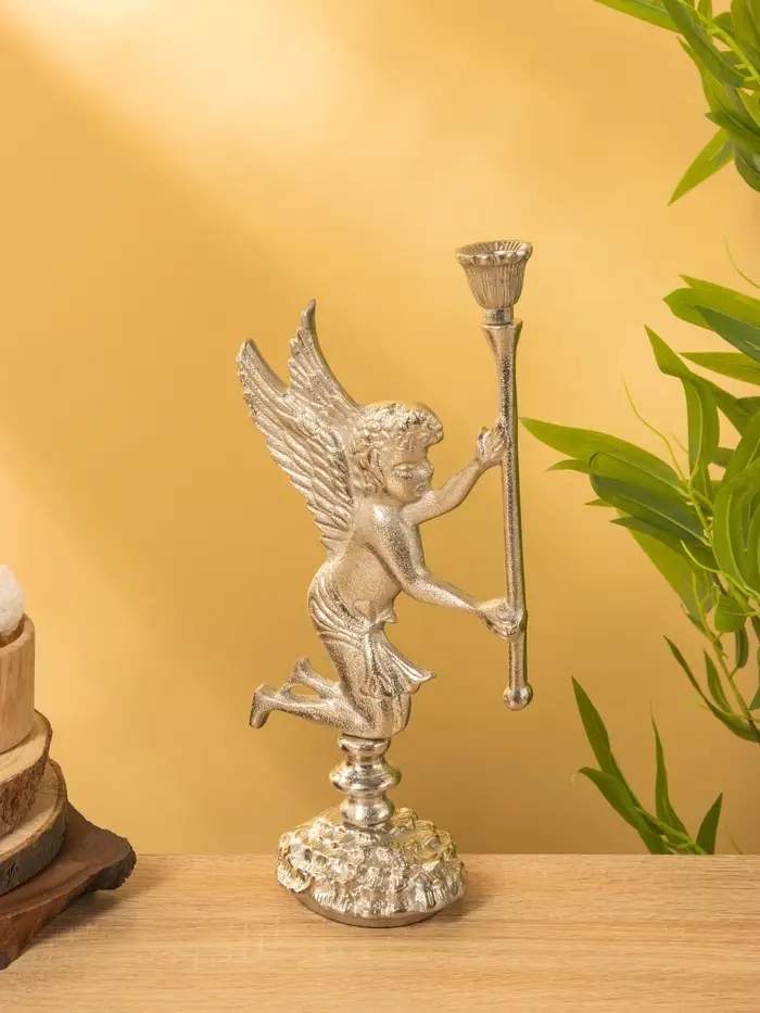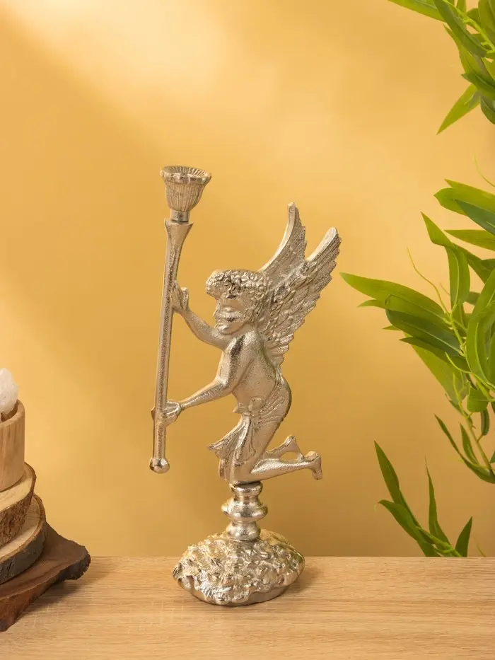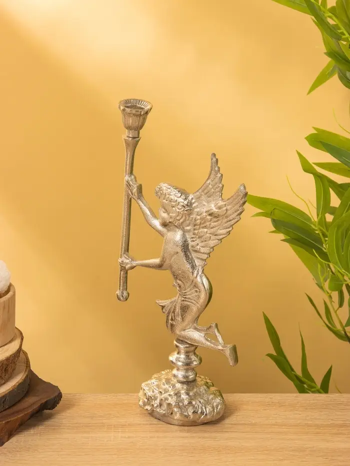 Подсвченик "Ангел мира с факелом" алюминий 35 см
