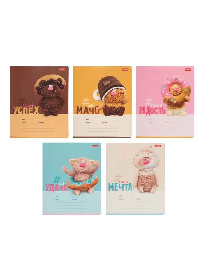 Тетрадь 18л лин Hatber "Кофейные коты", на скобе, скругл углы, 60-65г/м² 5В МИКС