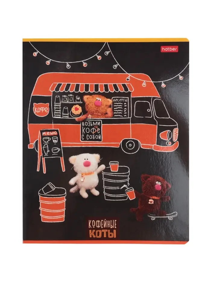Тетрадь 48л кл Hatber "Кофейные коты", на скобе, скругл углы, 60-65г/м² 5В МИКС